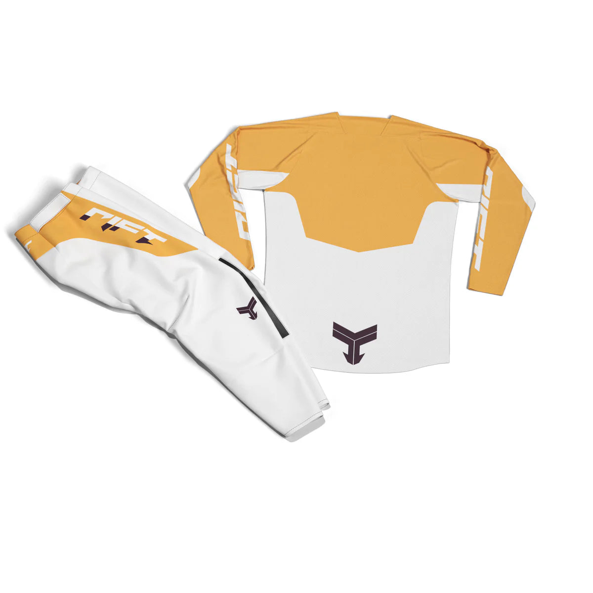 The Rift Magnitude Tan MX Gear includes Jersey and Pants. We add your name/number with our custom font and any additional sponsor logos if needed.